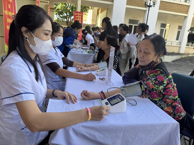 Người dân được đo huyết áp và xét nghiệm miễn phí tại Lễ mít tinh.