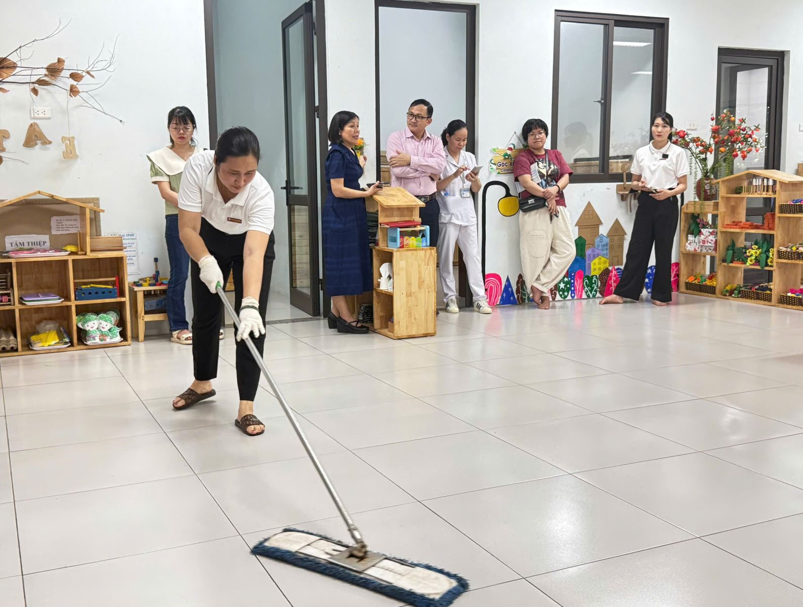 Các trường học, nhóm lớp tích cực triển khai các hoạt động như vệ sinh, khử khuẩn chủ động phòng chống bệnh tay chân miệng.