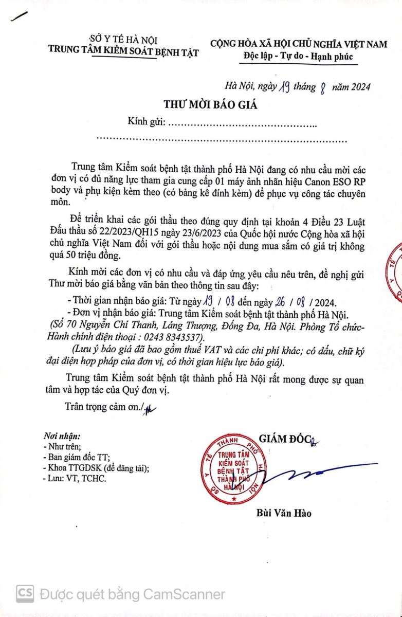 Thư mời báo giá cung cấp 01 máy ảnh nhãn hiệu Canon ESO RP body và phụ kiện kèm theo