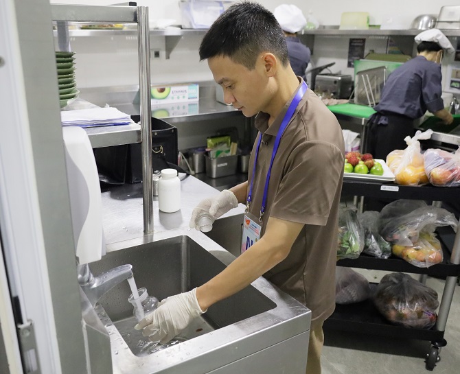 Tại các khách sạn, đoàn công tác tập trung kiểm tra việc duy trì vệ sinh môi trường; đảm bảo vệ sinh buồng phòng, khu vực bếp ăn, nhà hàng; công tác xử lý rác thải; biện pháp phòng chống, diệt côn trùng, động vật gây hại. Đặc biệt, đoàn đã tiến hành lấy mẫu nước tại các đầu vòi khu bếp theo đúng quy trình kỹ thuật, thực hiện xét nghiệm các thông số chất lượng nước sạch nhằm bảo đảm an toàn tuyệt đối cho đại biểu và du khách. Kết quả xét nghiệm sẽ được công khai trên cổng thông tin điện tử của CDC Hà Nội, đảm bảo tính minh bạch và khách quan.