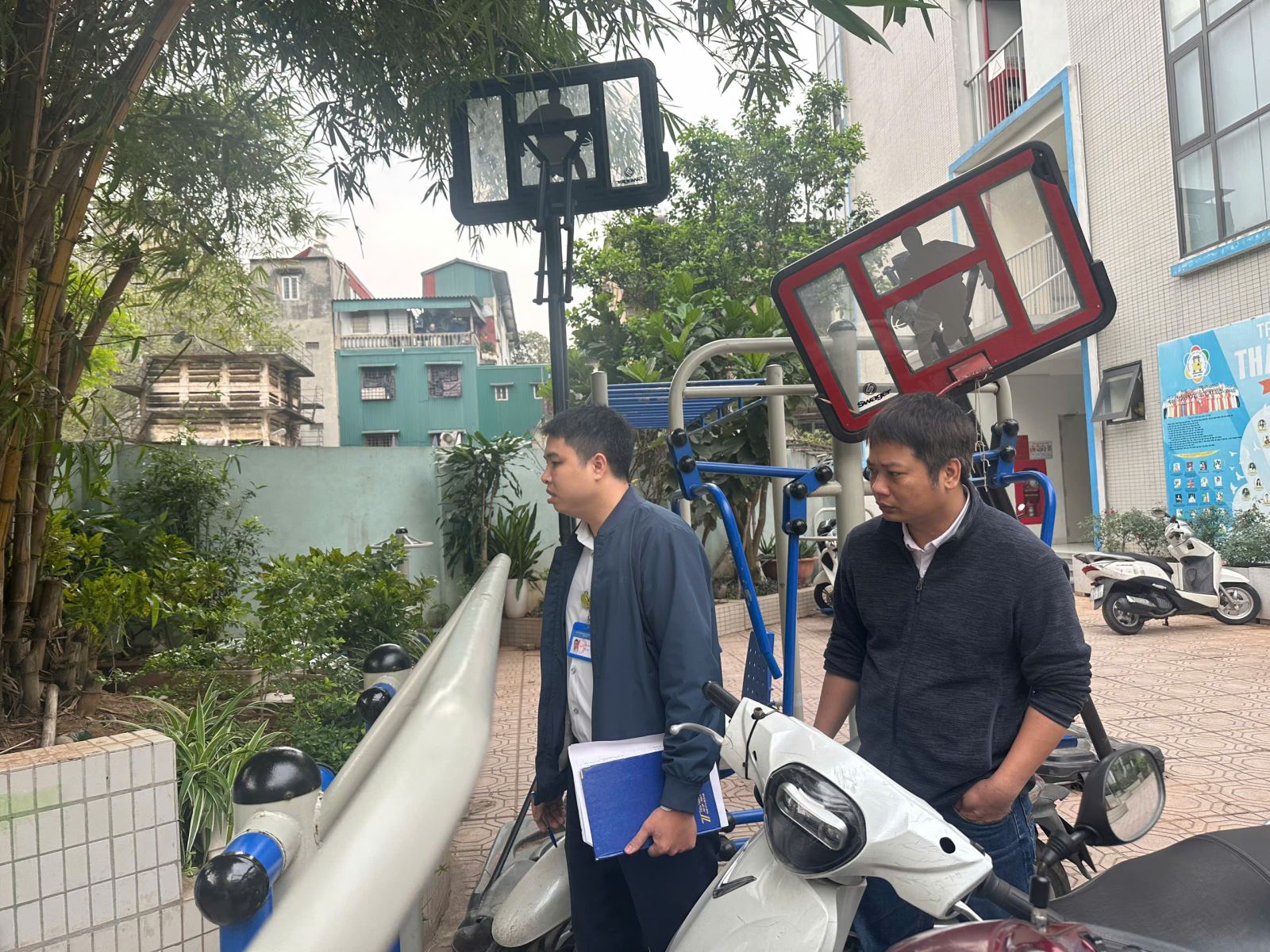Đoàn giám sát kiểm tra công tác vệ sinh môi trường tại điểm bầu cử Trường THCS Thành Công, phường Giảng Võ.