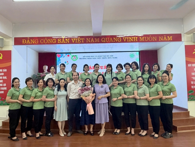 Các cán bộ, giáo viên Trường Mầm non Việt Triều Hữu nghị được tập huấn về các biện pháp phòng, chống bệnh tay chân miệng.